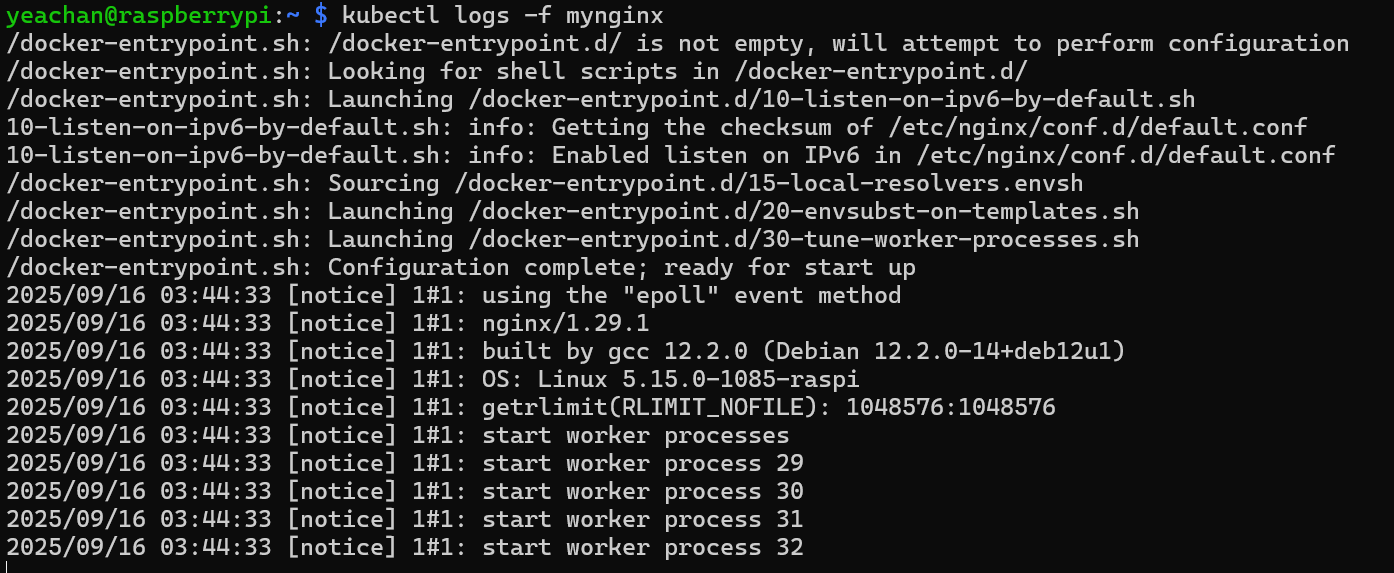 kubctl apply -f mynginx.yaml로 파드를 실행시키면