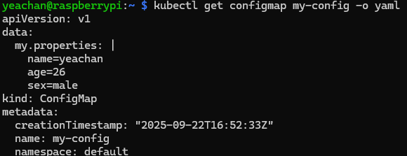 kubectl get configmap my-config -o yaml # 축약하여 cm