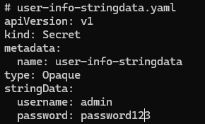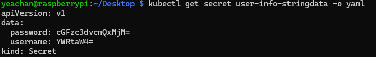 또한 data필드값을 직접 base64로 인코딩하지 않고 쿠버네티스가 처리해주길 원한다면
