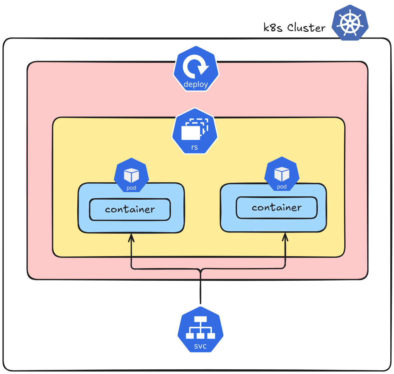 위처럼 ReplicaSet은 복제와 유지의 기능만 담당하고 실제 프로세스 실행은 Pod 리소스를 활용하는 것을 볼 수 있죠.